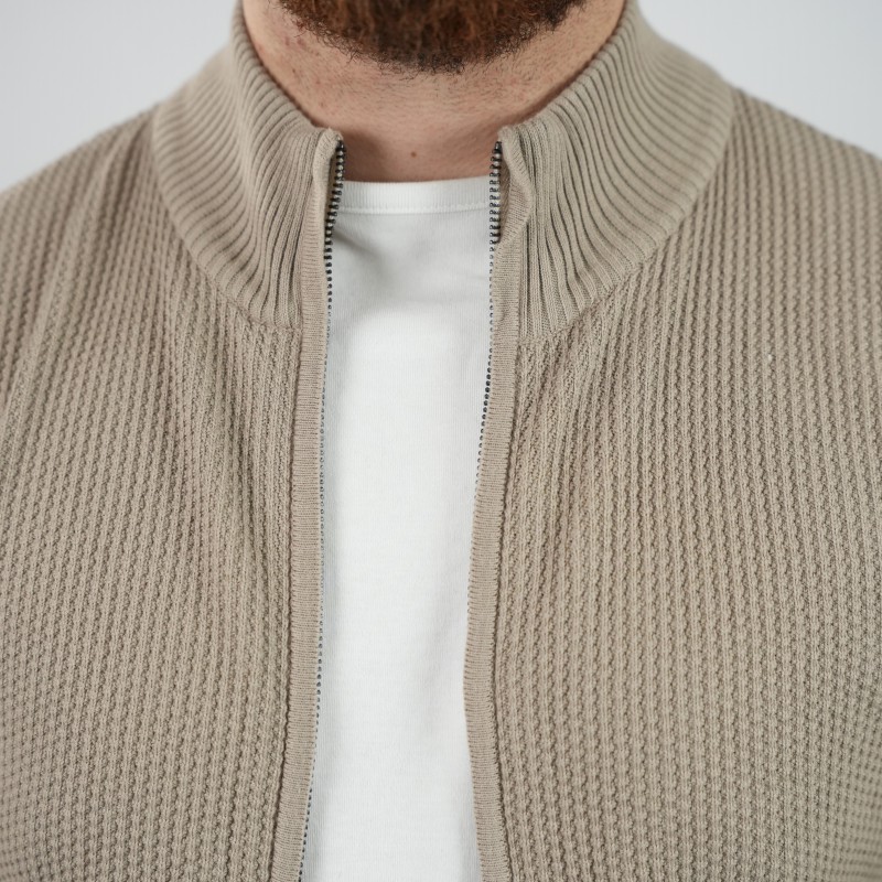 zip sweater beige di rossi cotton