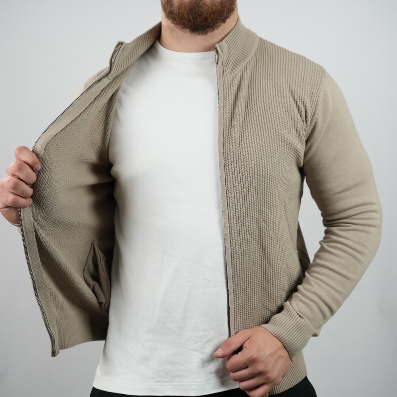 zip sweater beige di rossi cotton